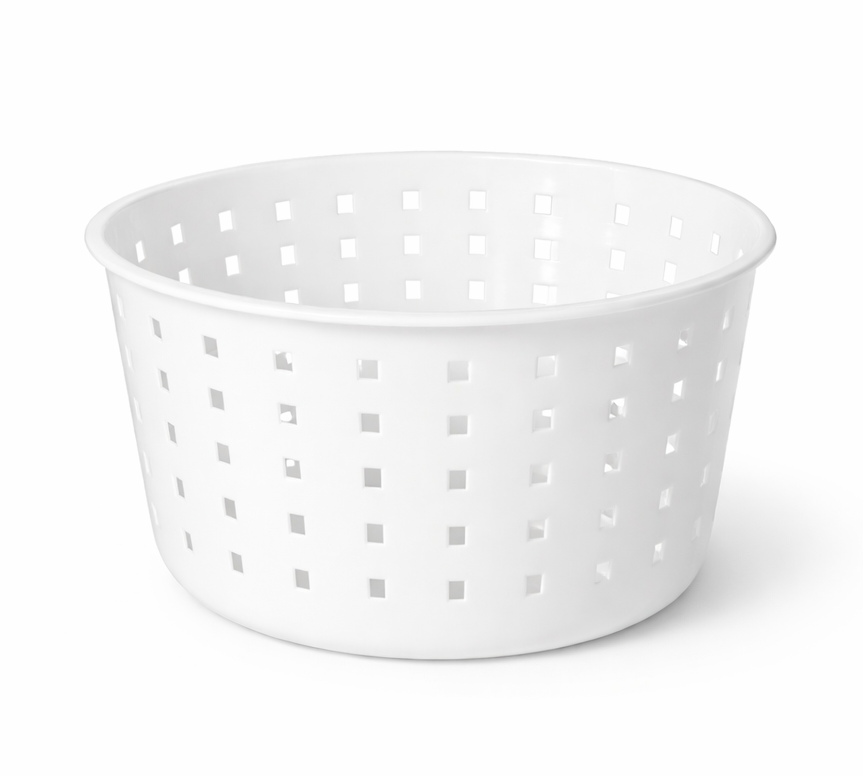 The Caciotta cheese mold is specially designed for producing the traditional Italian cheese Caciotta. It is a semi-hard cheese with a delicate, slightly sweet taste that matures over a short period, keeping its soft and elastic texture. The molds for Caciotta help shape the cheese into its characteristic cylindrical form.