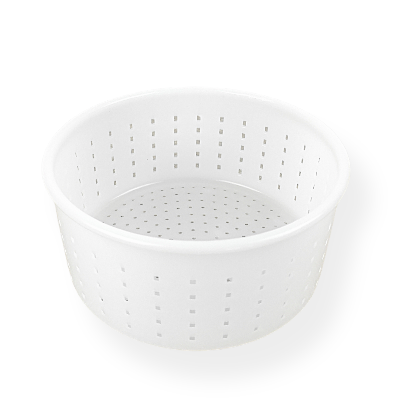 Universal Caciotta mold. Ideal for producing rennet and fresh cheeses. It allows for making wide but low cheeses, perfect for small Brie cheeses.