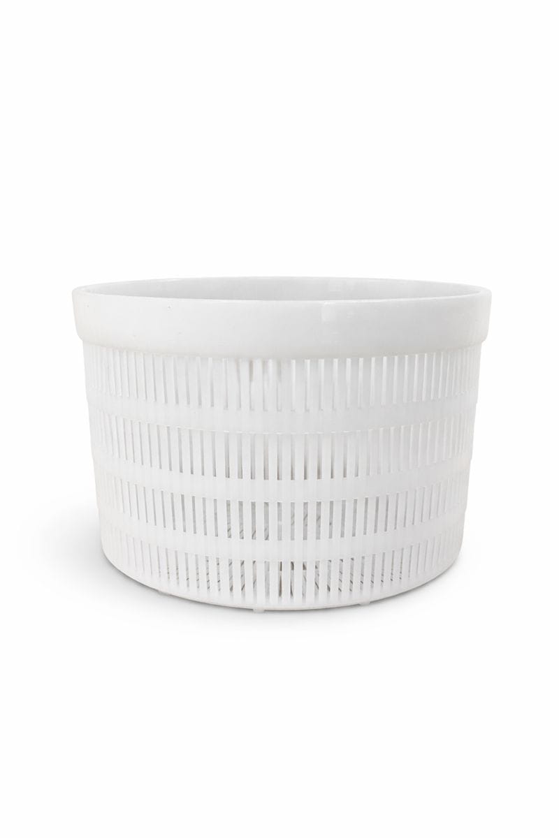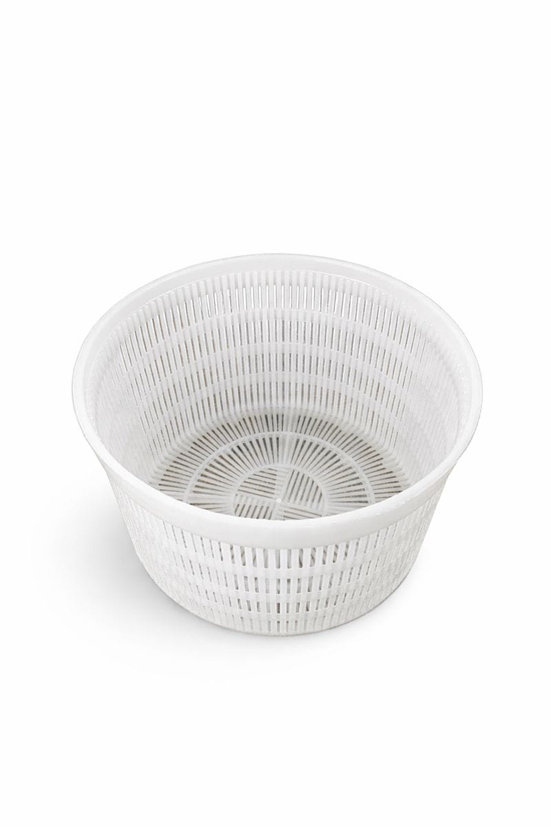 Cheese mold for the production of rennet or cottage cheeses. It leaves a slightly visible but distinctive pattern on the cheese.