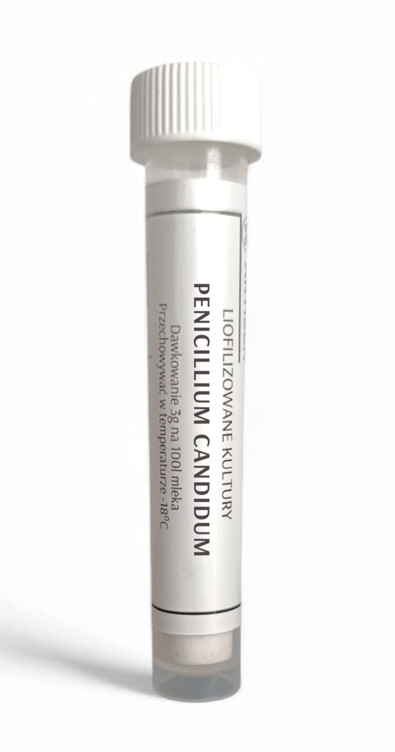 ARTISER Penicillium Candidum is a carefully selected, freeze-dried, high-quality mold culture used for direct inoculation of milk. This mold is suitable for producing cheeses such as Brie, Camembert, and all bloomy rind cheeses, as it forms a dense, white, velvety surface on the cheese.
