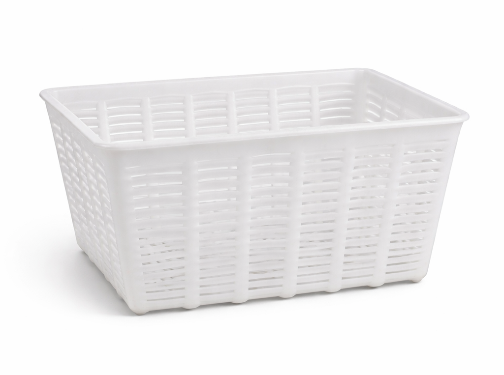 The universal rectangular mold with a distinctive pattern is perfect for rennet-based cheeses, cottage cheeses, and ricotta.